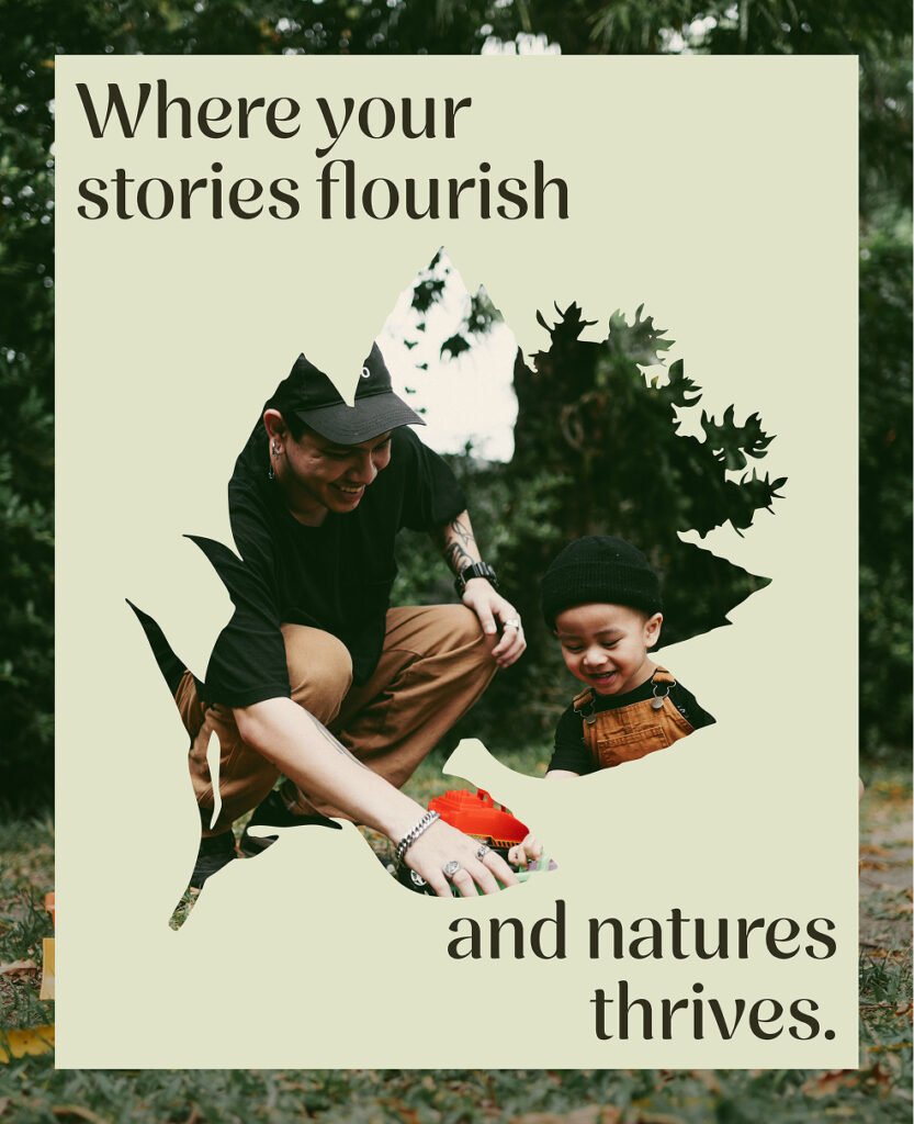 O redesign traduz essa essência, projetar lugares onde histórias florescem e a natureza prospera, em uma linguagem visual orgânica e equilibrada. As curvas do logotipo evocam fluidez e transformação; as cores, inspiradas em tons terrosos e verdes profundos, reforçam a ideia de equilíbrio e sustentabilidade. Ilustrações de espécies nativas e a fotografia de texturas, processos e paisagens finalizadas completam um sistema que celebra o vínculo entre cuidado, vida e crescimento.